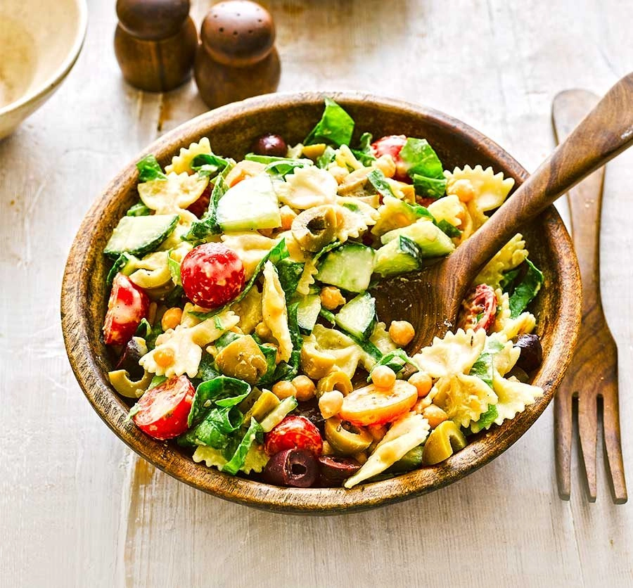 هوموس یا نخود پخته و لهشده به همراه ارده کنجد، یک سس خامهای و پر از پروتئین است که میتواند سالاد ماکارونی شما را خوشمزه و مقوی کند.