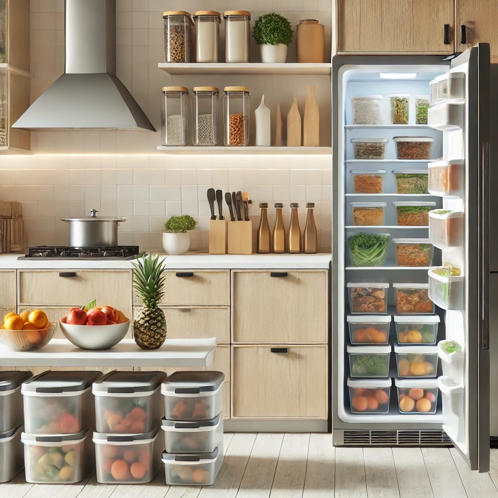 ۱) تقسیمبندی مواد غذایی: غذاها را در ظروف دربدار و مناسب نگهداری کنید تا از تداخل بوها جلوگیری شود.