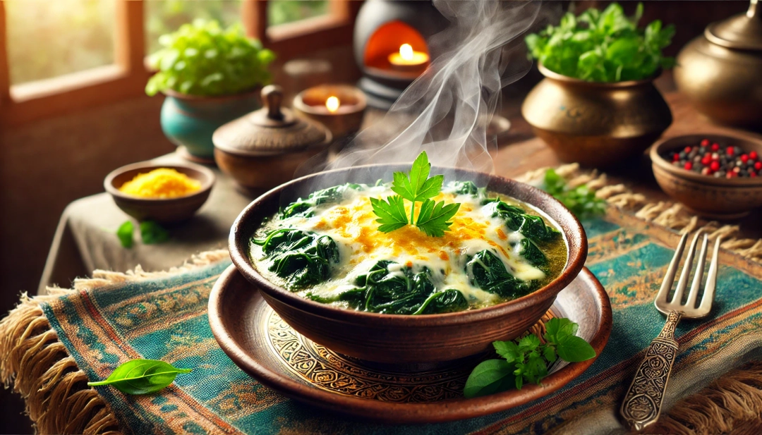 خوراک اسفناج و پنیر شما آماده است. این غذا را میتوان بهتنهایی یا بههمراه نان تازه سرو کرد.