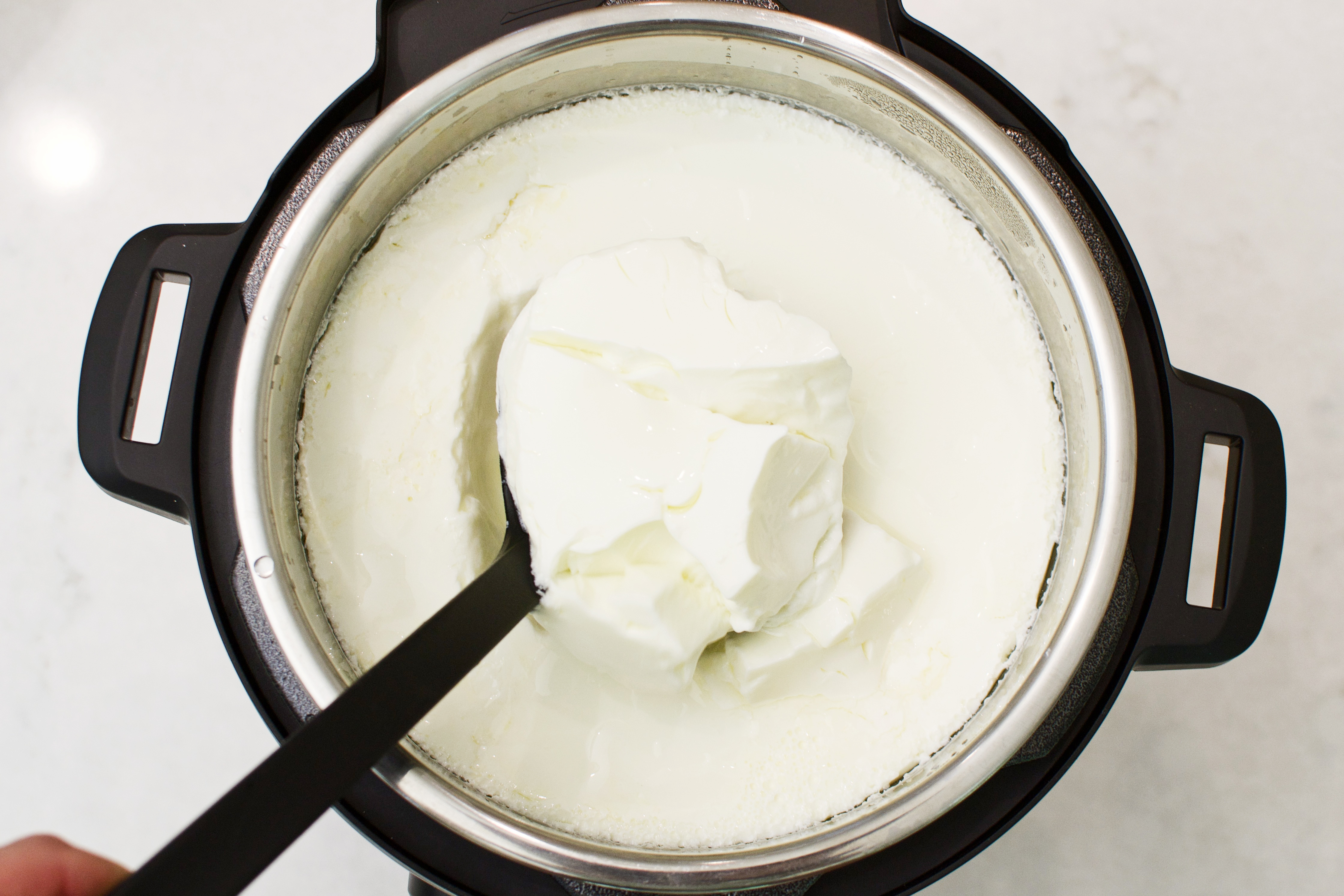 ۲. خنک کردن شیر: قابلمه را از روی حرارت بردارید و بگذارید شیر خنک شود تا به دمای حدود ۴۵ درجه سانتی‌گراد برسد. برای اندازه‌گیری دما می‌توانید از دماسنج آشپزی استفاده کنید. اگر دماسنج ندارید، می‌توانید با انگشت امتحان کنید؛ شیر باید گرم باشد اما دست را نسوزاند. اگر از شیر غیرپاستوریزه استفاده کرده باشید، در این مرحله یک لایه خامه روی شیر جمع شده است. بسته به اینکه دوست دارید ماست شما چرب باشد یا نه؟ می‌توانید خامه را از روی شیر بردارید یا آن را به همان صورت بگذارید تا یک ماست چرب داشته باشید.